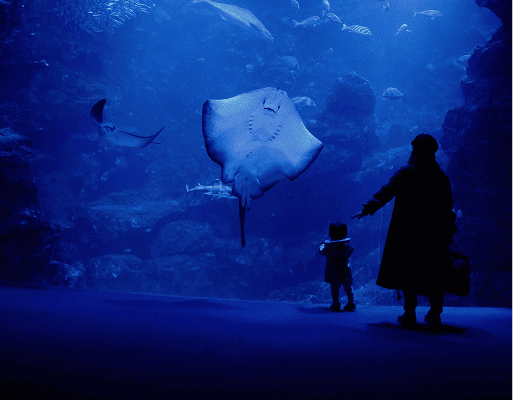 В океанариуме посетители могут наблюдать морских обитателей в условиях, максимально приближенных к естественной среде. Для экспозиции созданы огромные акриловые тоннели и панорамные бассейны объемом до 3 миллионов литров, создающие эффект нахождения под водой. Системы жизнеобеспечения поддерживают точные параметры воды для разных климатических зон: от тропических рифов до арктических вод. В крупнейших океанариумах содержатся до 15 тысяч морских обитателей 500 видов, включая редких акул, скатов и гигантских черепах.